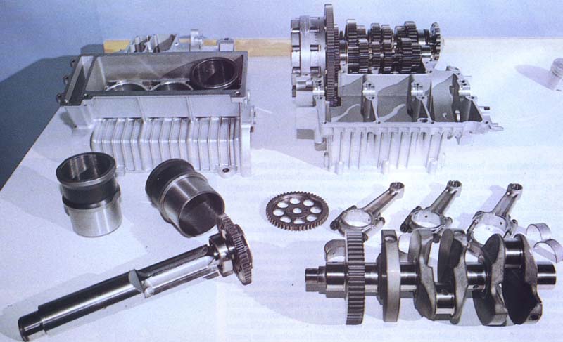 Coté moteur, à l'exception du carter inférieur, tous les carters moteurs sont différents ainsi que les fonderies de cylindre et de culasse.