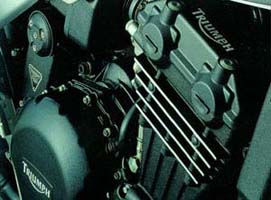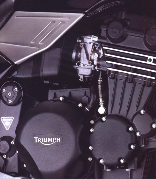Pour réduire la puissance et déplacer la valeur de couple, Triumph a agi sur la compression, le réglage de carburation, l'échappement, le filtre à air, le boîtier d'allumage et, bien sûr, les arbres à cames identiques à la Tiger.