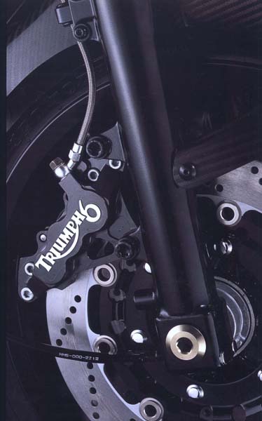 Sur les modèles équipés d'étriers avant à 4 pistons, ceux-ci sont désormais estampillés "Triumph" et non plus "Nissin".