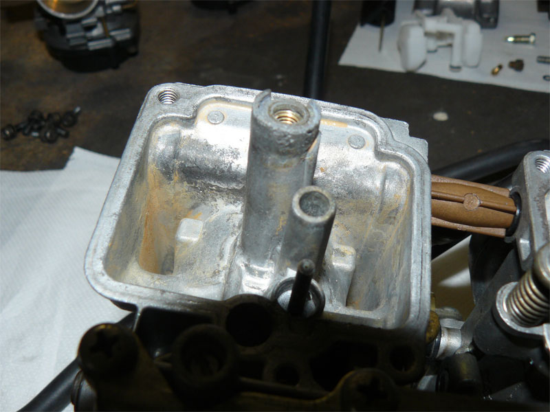 Je pense que cette rampe devait être en piteux état quand le motociste l’a ouverte ! L’alu des puits de gicleurs est noir et bouffé !!!